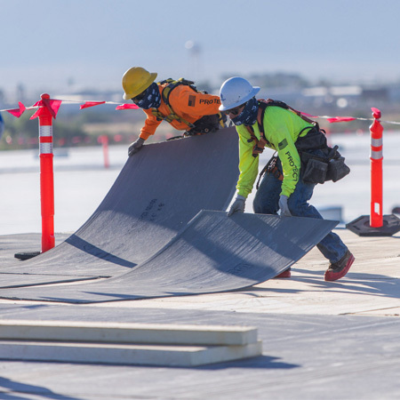 Additional reinforcement for commercial roof assemblies in HVWZ areas includes high-strength fasteners and adhesives, but adding a layer of coverboards, such as DEXcell Roof Board products, can help the roof assembly withstand greater wind uplift forces.