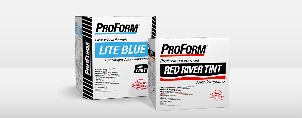 ProForm Finishing Products, LLC, an affiliate of National Gypsum Company, offers two versions of tinted ready mix joint compound designed to deliver the same high-performance finish professionals expect.